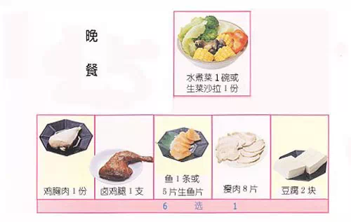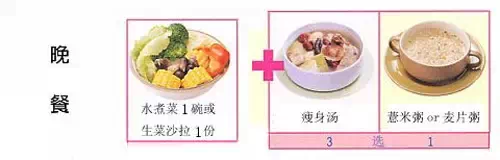 继续坚持清澹的水煮菜或生菜沙拉(不可加沙拉酱)1份,再选择下面的任何一个晚餐组合吧: