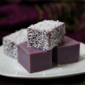 8. 脱模后切正方形块。切得时候刀蘸水。点缀黑加仑葡萄干或者枸杞,表面淋上少许蜂蜜风味更佳。